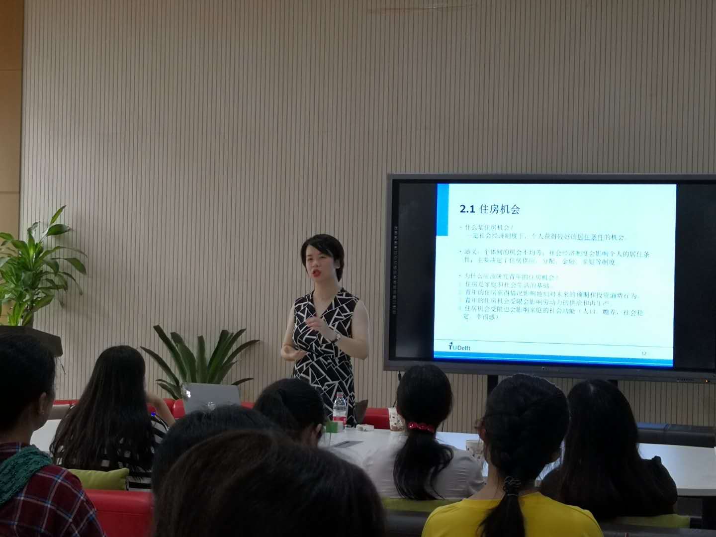 随后,邓文静博士将关注点聚焦中国青年的住房机会结构,其研究引入市场转型理论(market transition),根据中国综合社会调查2012年的数据,得出中国年轻人的住房机会主要不是由自身能力,而是由父母的政治经济背景所决定的结论。针对这一结论,邓文静博士与在座的老师和同学一起探讨造成这一结论的制度原因并思考相关政策建议。
