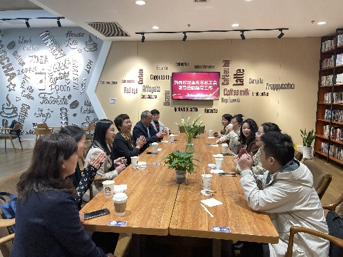 陈翠岚对市总工会领导莅临指导表示欢迎,并感谢市总工会一直以来的支持和指导,介绍了图书馆及图书馆工会的基本情况,汇报了“阅享”特色活动品牌及“六有五家”活动建设情况。市总工会一行先后参观了图书馆二楼文化连廊、工会职工之家、视听阅览室、翠湖书吧、咖啡屋,还听取了图书馆工会文艺委员张颖对党建活动的介绍,大家对开展丰富多样的党建带工建活动纷纷点赞。总工会基层组织建设部王部长充分肯定了图书馆工会紧扣书香特色、制度完善、材料归档完整,充分发挥场地优势,服务全校师生;并建议要突出工商特色,进一步打造好品牌。