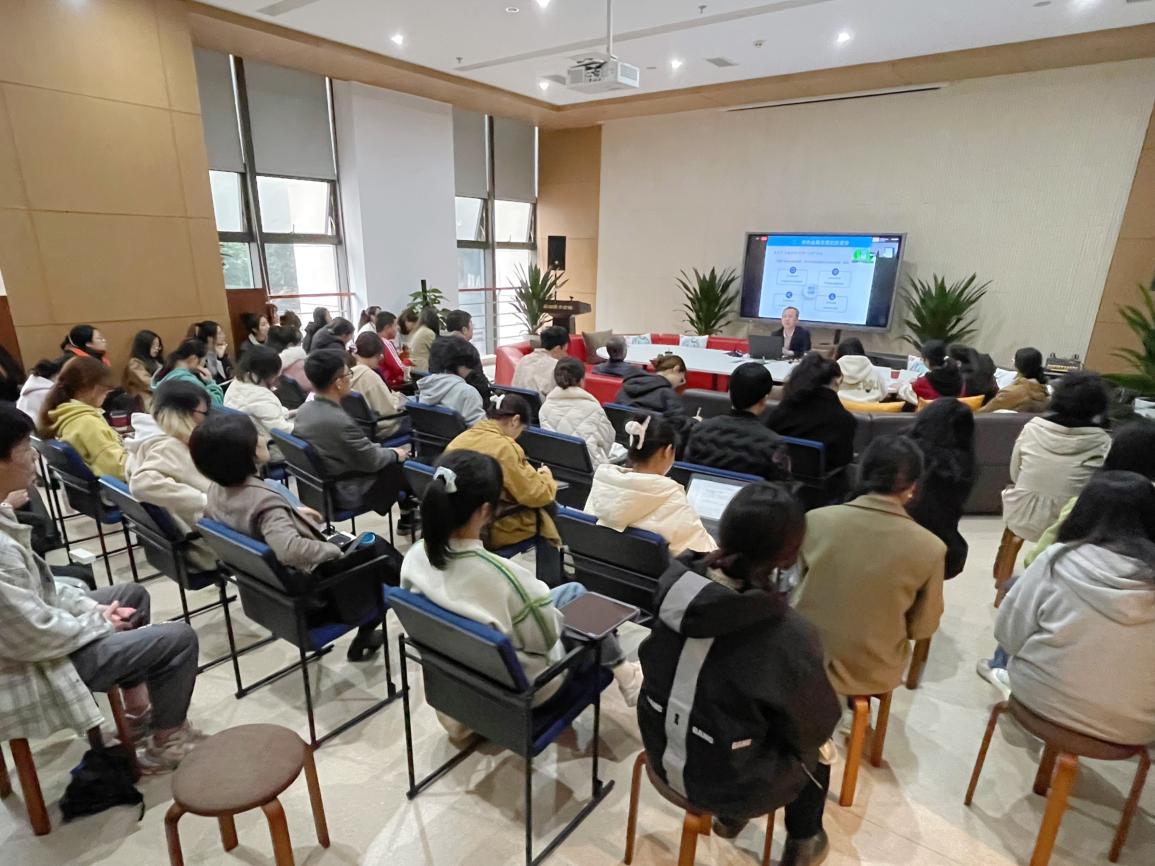 王伟博士从气候变化与“双碳”目标、绿色金融发展的新使命、绿色金融服务“双碳”实践三方面展开了本次研讨。王伟博士首先介绍了气候变化对全球造成的严峻影响,引出绿色金融概念。王博士从试点绿色金融改革创新试验区、创新绿色金融产品与服务、培育低碳理念和绿色金融文化等方面着重介绍了绿色金融服务“双碳”实践途径。他指出绿色金融要更契合中国式现代化,主动服务国家“双碳”战略,为“双碳”目标提供源源不断的动力。最后,师生们就绿色金融与不同专业融合发展的前景等问题展开了热烈讨论。