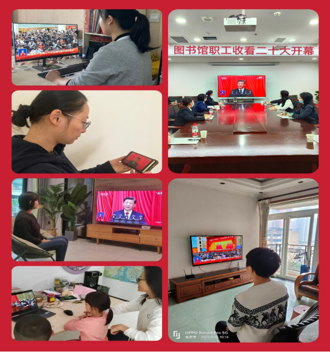 图书馆教职工以集中和分散相结合的方式收看党的二十大开幕会
